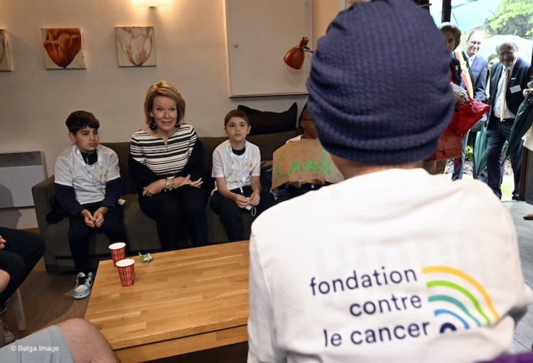 La Fondation contre le Cancer bénéficie, pour son 100e anniversaire cette année, du Haut patronage de Sa Majesté. Arrivée au camp mardi matin, la reine Mathilde a eu l'occasion de s'entretenir avec les deux coprésidents de la fondation, l'équipe organisatrice du camp, des membres de l'équipe médicale et des enfants et adolescents. Elle a aussi pris part à la cérémonie d'ouverture des olympiades du camp, à laquelle participait également Vincent Vanasch, le gardien de but des Red Lions, l'équipe belge de hockey sur gazon.